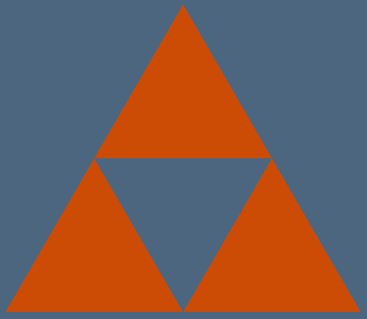 // Draw the 3 triangles in the shape of 1 big triangle with an empty triangle in the middle